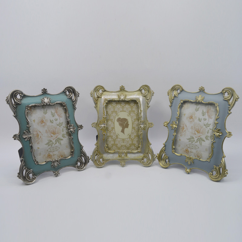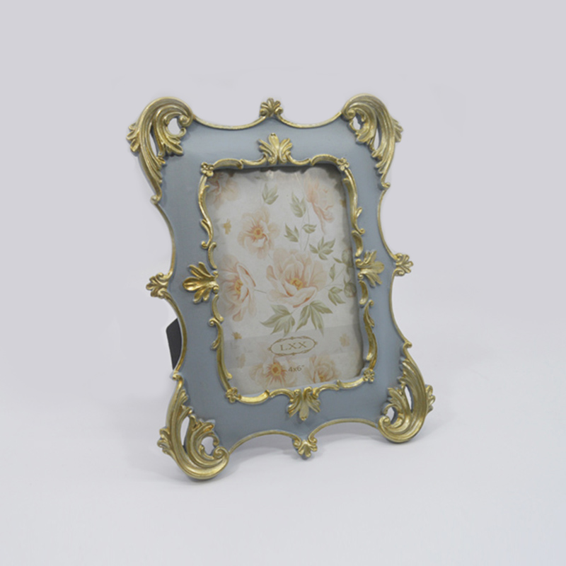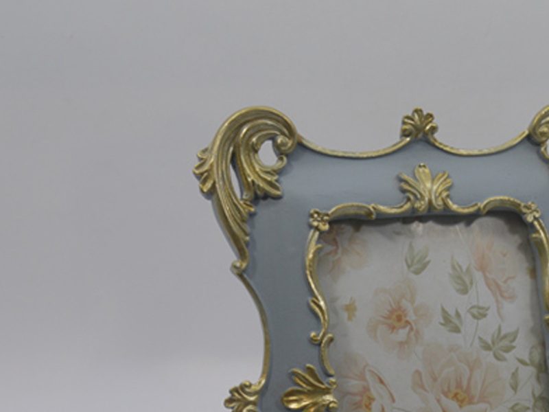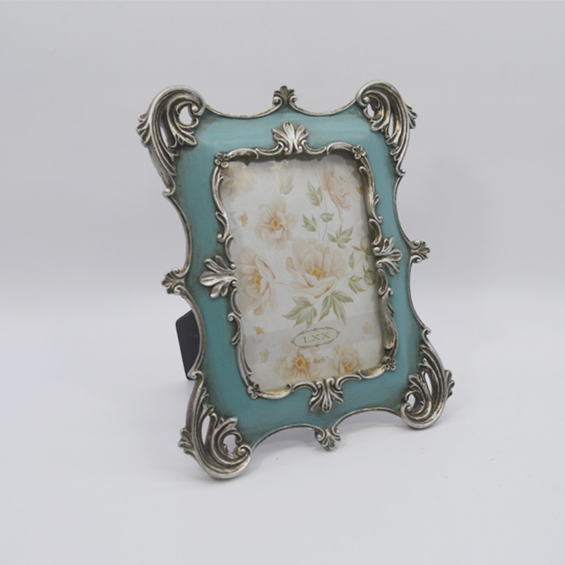 Nosotros proporcionamos Marcos de fotos de poliresina de alta calidad Con un diseño barroco vintage, este modelo 1767 presenta un acabado azul antiguo y dorado pintado a mano, ideal para tiendas de decoración del hogar, regalos y artículos para bodas. Combina una resistente construcción de resina con un frente de cristal auténtico, lo que garantiza un alto valor para sus clientes finales.