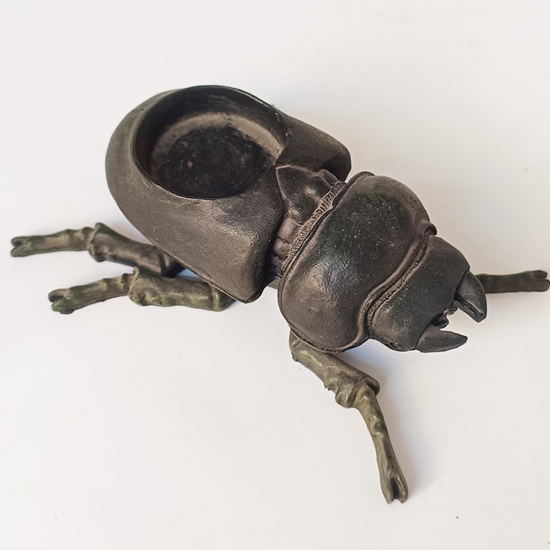 Las patas están decoradas con patrones envejecidos en negro, restaurando la textura y los detalles del escarabajo, consiguiendo un efecto biomimético muy realista.