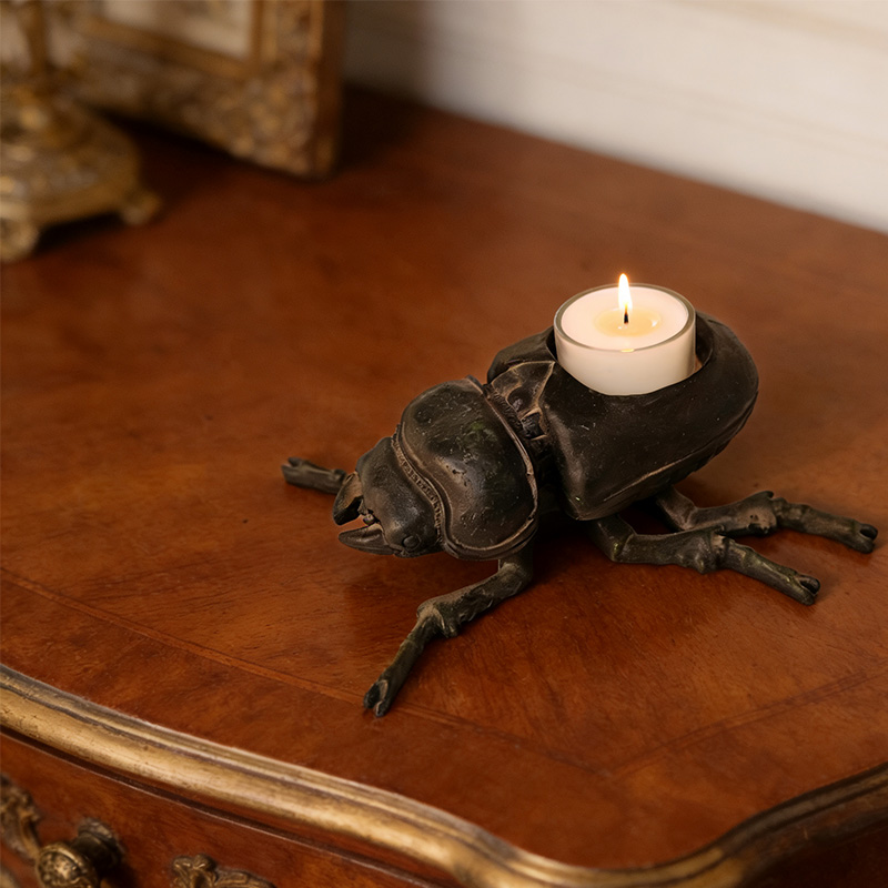 El área funcional principal El candelabro se encuentra en la parte posterior del cuerpo del escudo. Este diseño no solo conserva la forma biomimética del escarabajo, sino que también cumple la función práctica del candelabro. Su diseño combina la biomimética natural con el estilo industrial retro. Puede usarse como elemento decorativo en el escritorio o en la entrada, y también como un candelabro funcional, combinando atractivo artístico con practicidad.