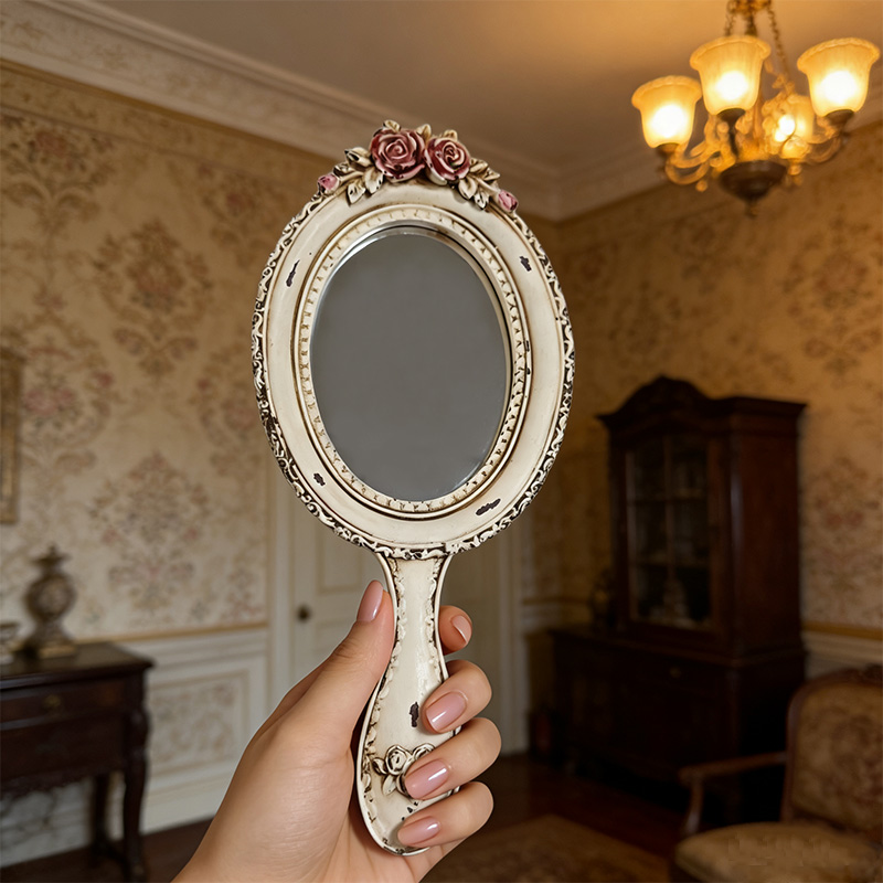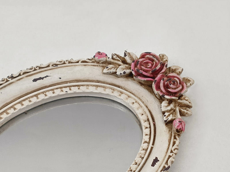 El marco y el mango están decorados con patrones de relieve tridimensionales, y la parte superior está adornada con tallas de rosas rosadas, presentando detalles exquisitos.